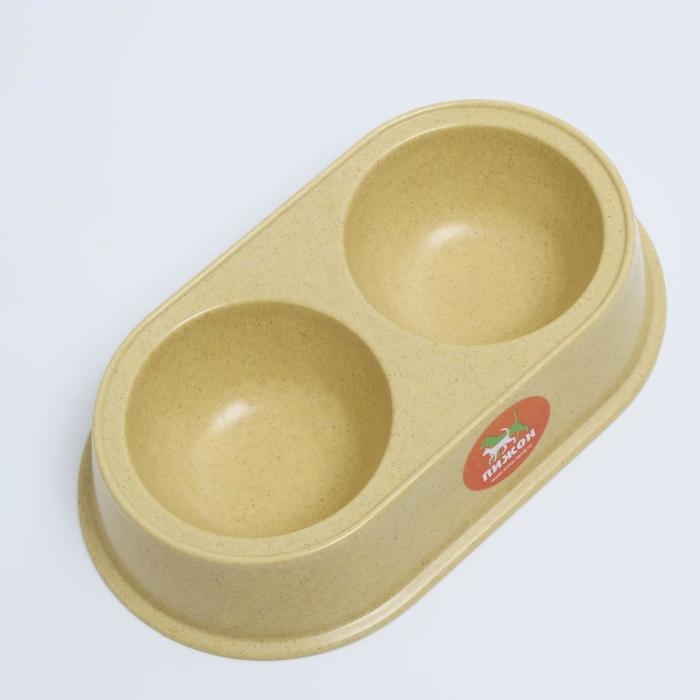 Миска бамбуковая двойная, 23,5 х 13 х 5 см, желтая