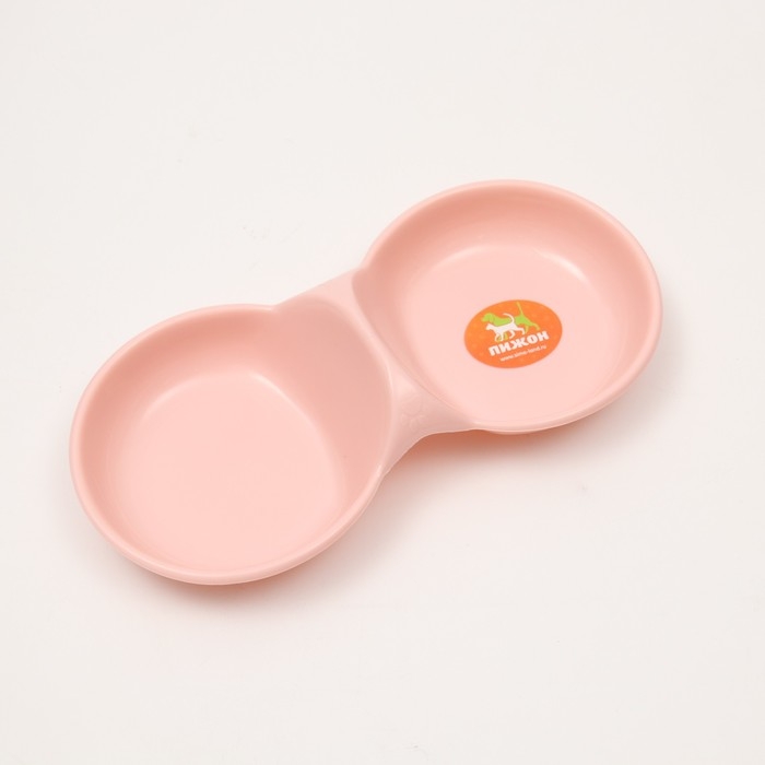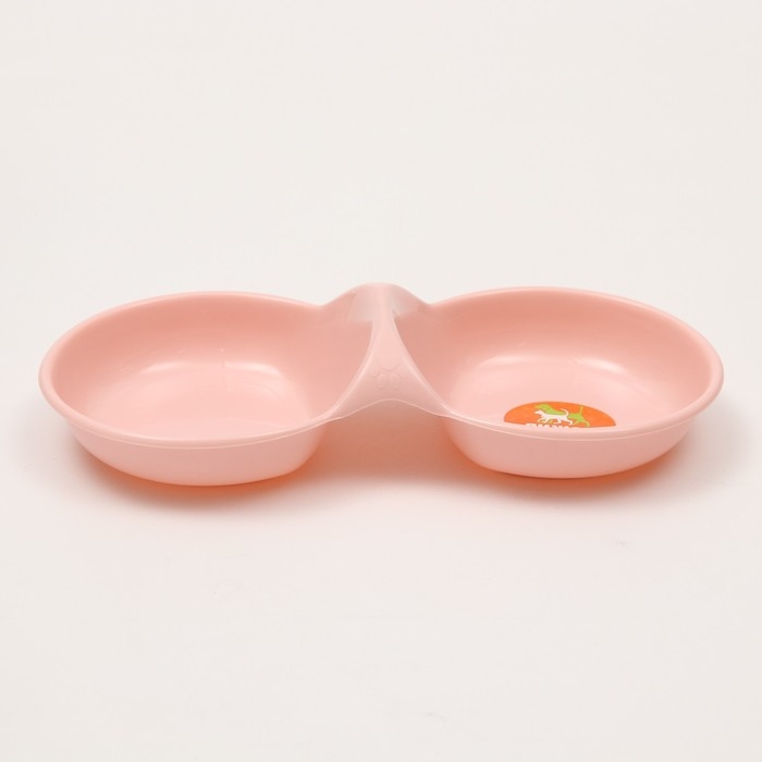 Миска двойная пластиковая 2 х 160 мл, 24 см х 11,5 см х 3 см, розовая