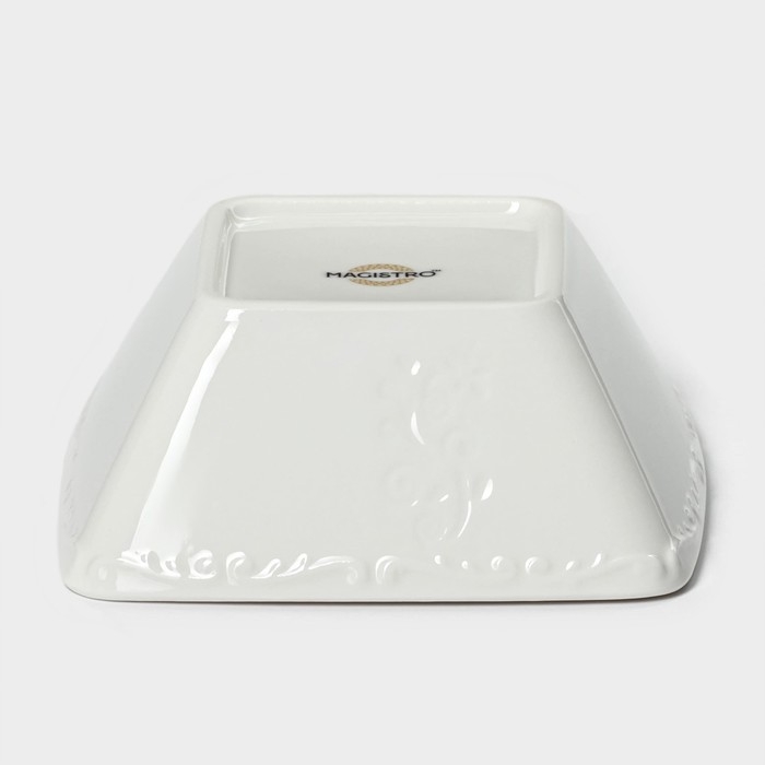 Представляем вашему вниманию миску из фарфора "Kingdom" от бренда Magistro. Этот изящный и практичный предмет посуды станет отличным дополнением для любой кухни. Миска выполнена из высококачественного фарфора и имеет квадратную форму, что придает ей стильный и современный вид.