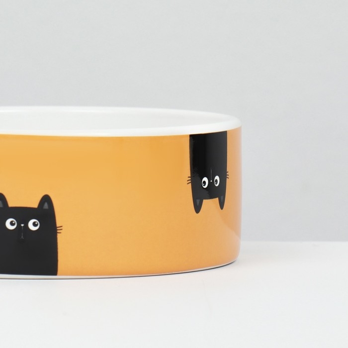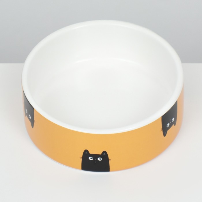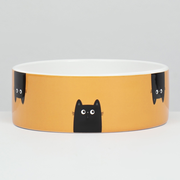 Миска имеет объем 230 мл и идеально подходит для кошек. Её ярко-жёлтый цвет и элегантный рисунок добавят радости в каждый прием пищи вашего пушистого друга. Керамическая поверхность легко моется и устойчива к царапинам, что обеспечивает удобство в использовании и поддержании чистоты.