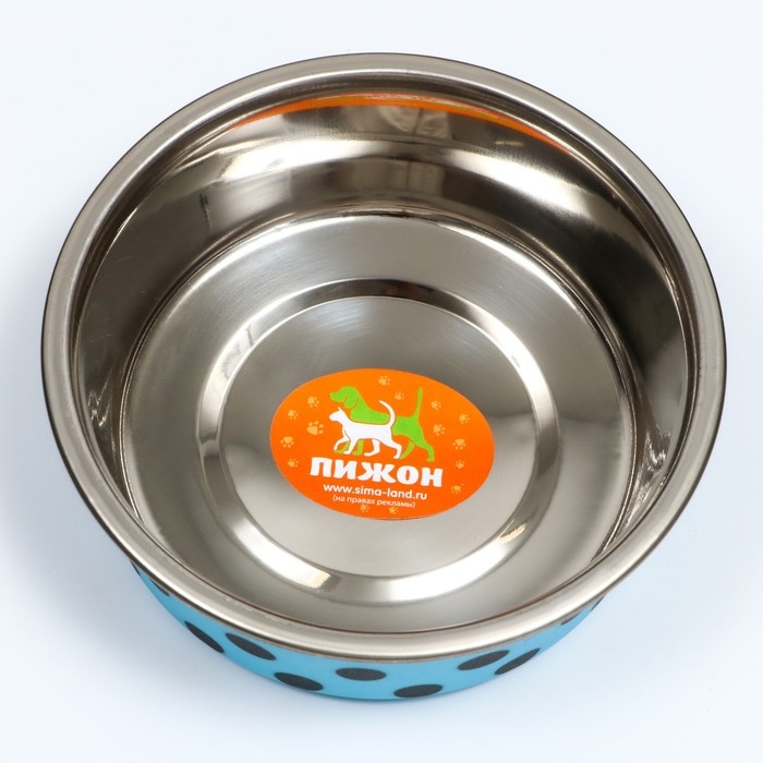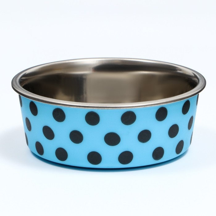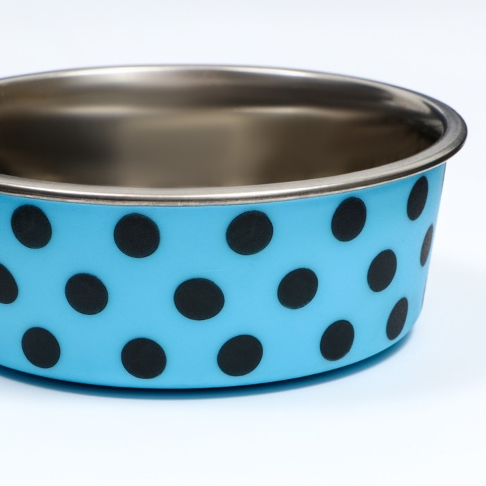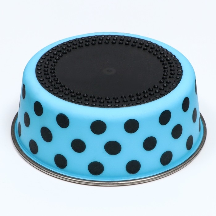 Миска металлическая в пластиковом корпусе "Горошек", 290 мл, голубая