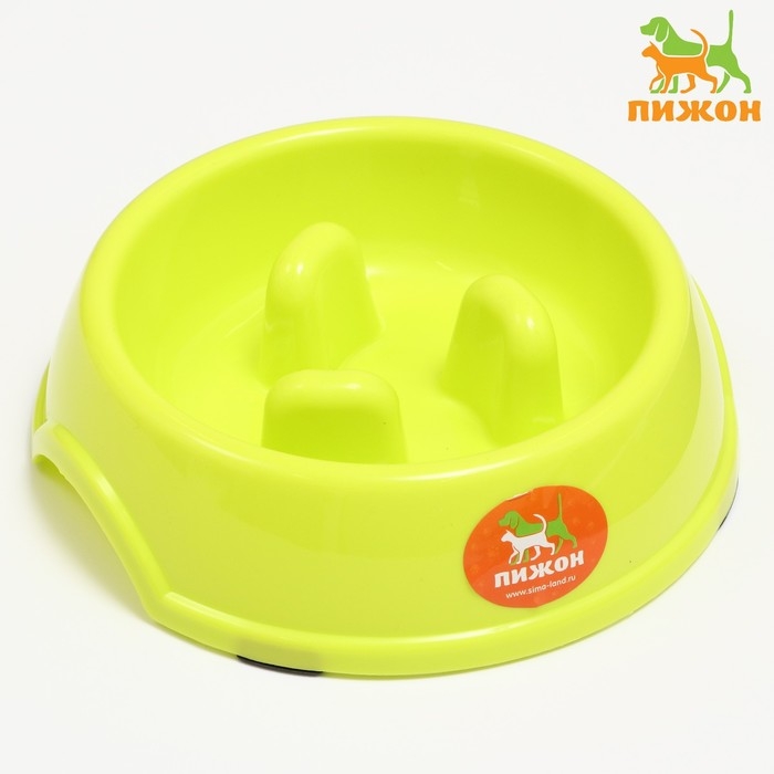 Миска пластиковая медленное кормление18 х 18,5 х 5,5 см, зелёная