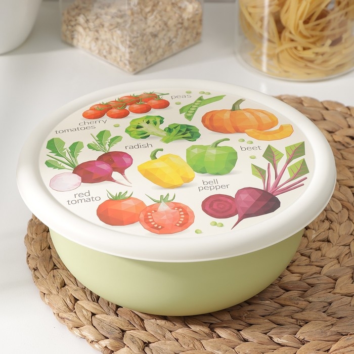 Миска с крышкой, 2,1 л, d=22,5 см, h=9 см, с декором, цвет салатовый