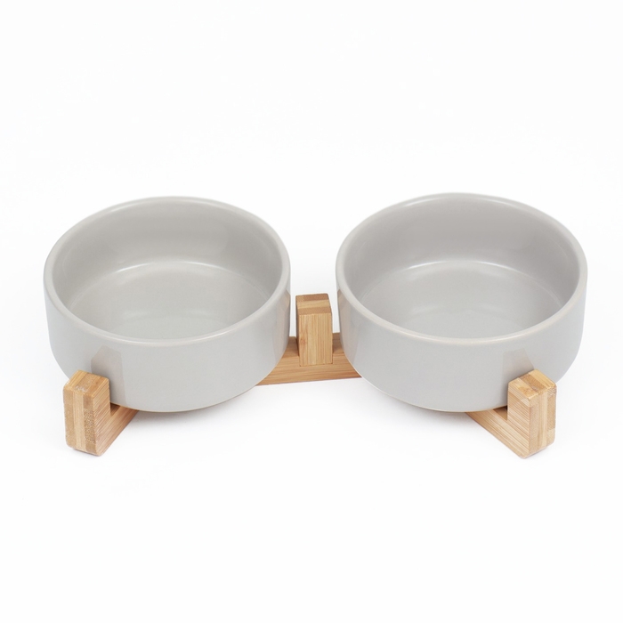 Миски керамические двойные на подставке 2 х 450 мл 28,5 х 15,5 х 7 см, серая
