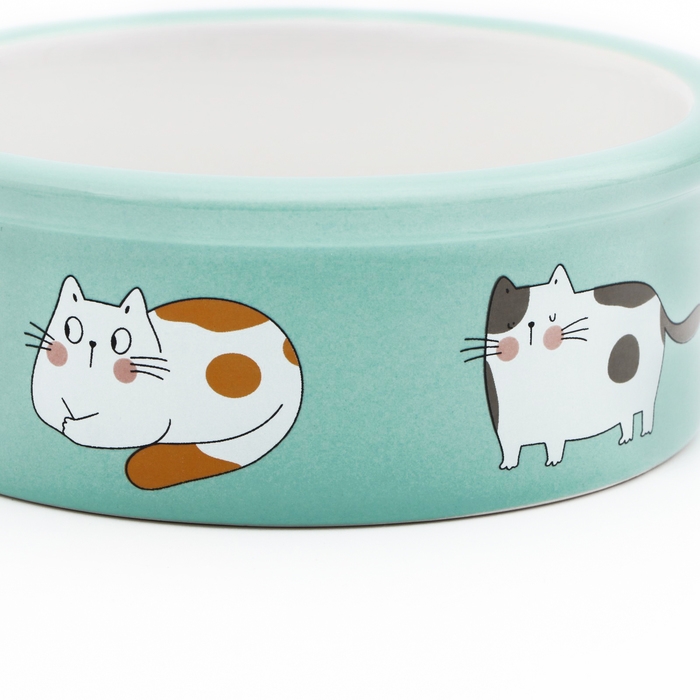 Миска керамическая "Котяры" 300 мл 12,5 x 4,5 cм, бело-зелёная