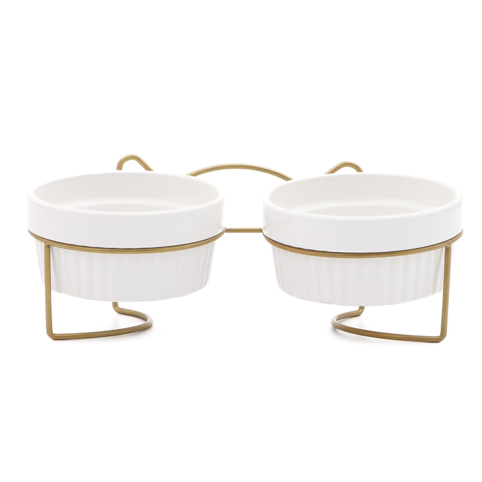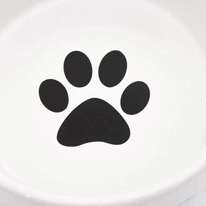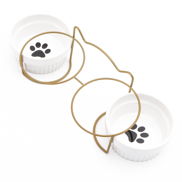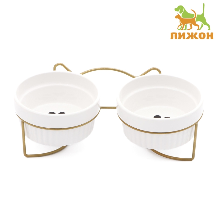 Миска оснащена двумя глубокими чашами по 250 мл каждая, что делает её идеальным выбором для кормления кошек. Белоснежный цвет и аккуратный рисунок добавляют шарма, а надежная подставка гарантирует, что миска останется на месте во время трапезы.