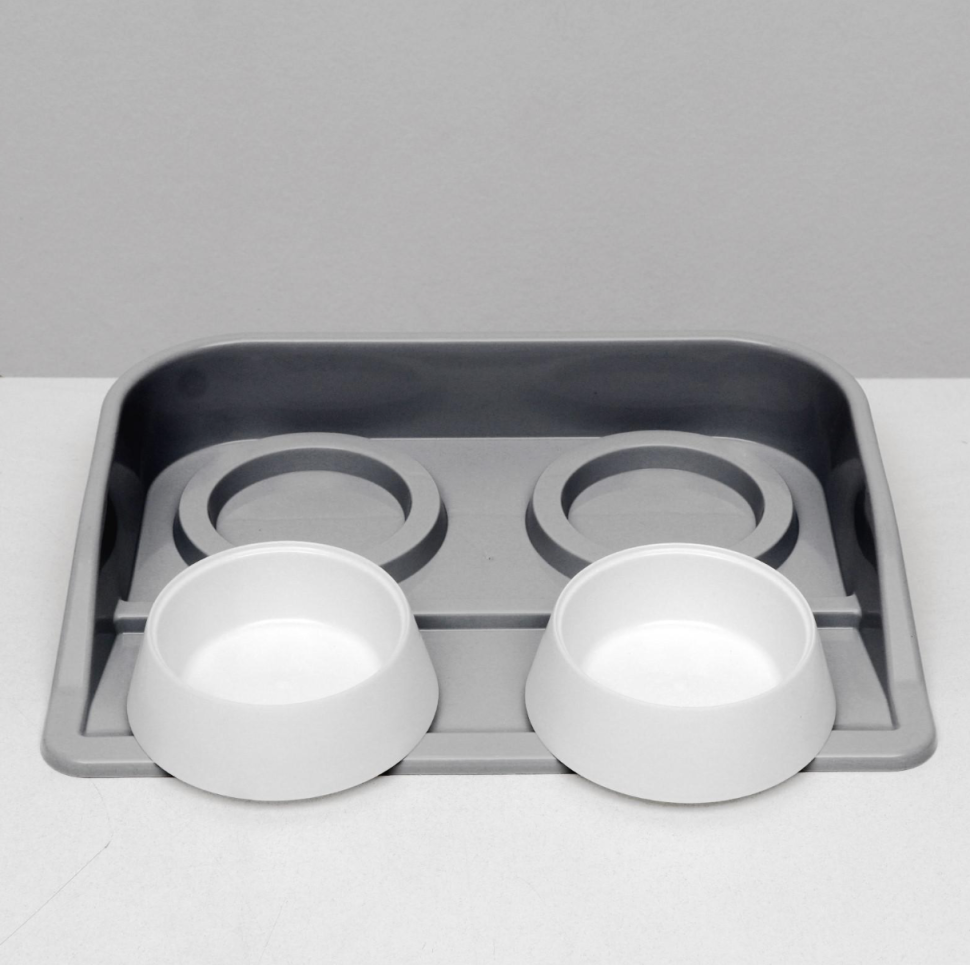 Миски с лотком "Феликс" 0,3 л, 41 x 30 x 6 см, серый лоток, белые миски