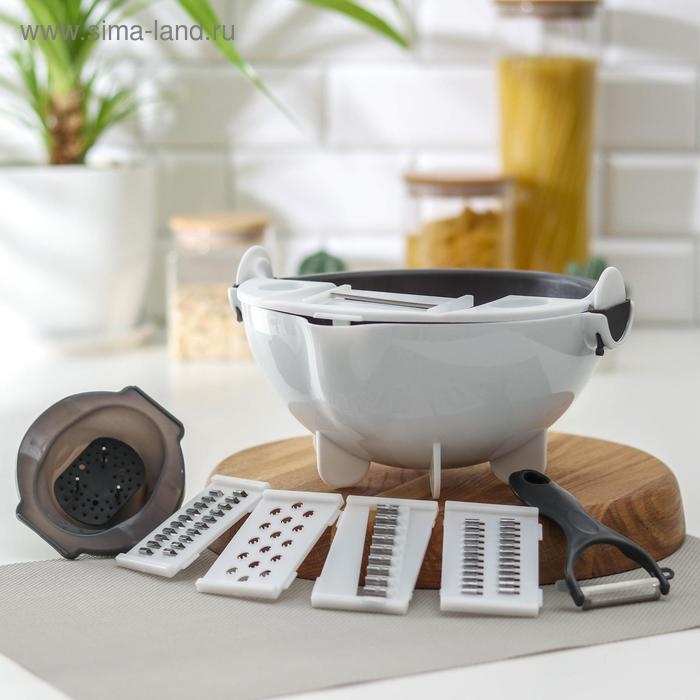 Многофункциональная овощерезка «Маджестик», со сливной корзиной, 22,3×13,5×22,5 см, цвет бело-серый