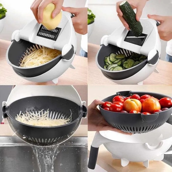Многофункциональная овощерезка «Маджестик» со сливной корзиной поможет нарезать картофель, измельчить чеснок, нашинковать капусту или приготовить детское фруктовое пюре. Прибор способен заменить нож, тёрку и шинковку.