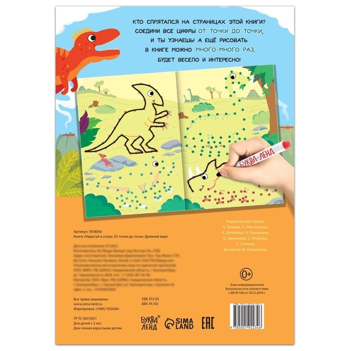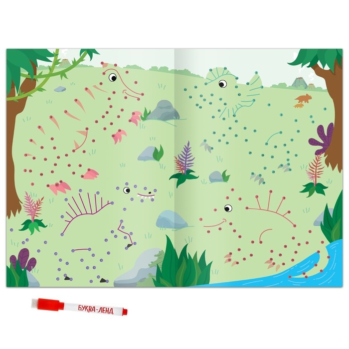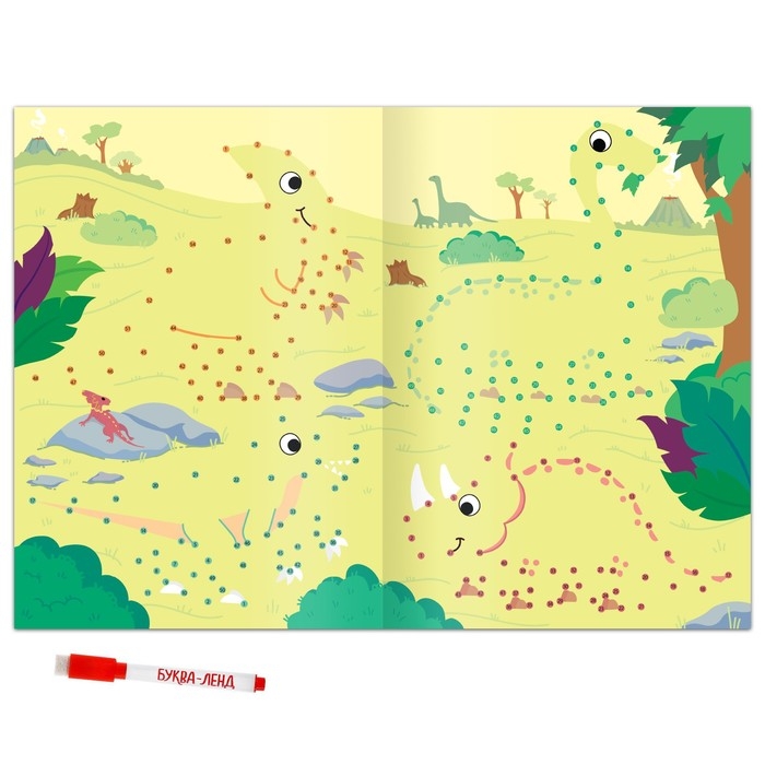 Многоразовая книга «Рисуем по точкам. Динозавры», с маркером, 16 стр.