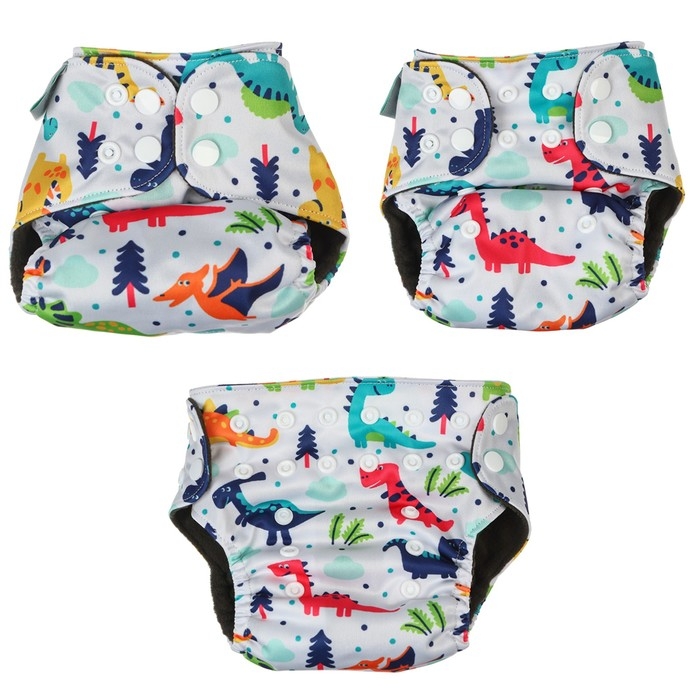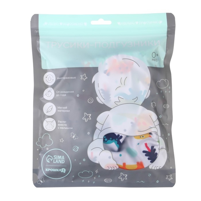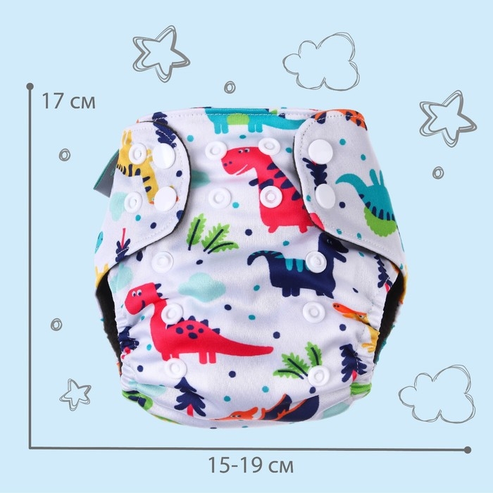 Многоразовый подгузник «Динозаврики», 3-8 кг, цвет белый, Крошка Я