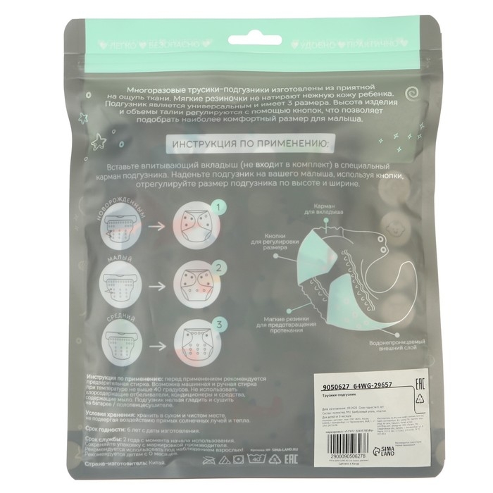 • Подгузник имеет удобный кармашек для вкладыша;