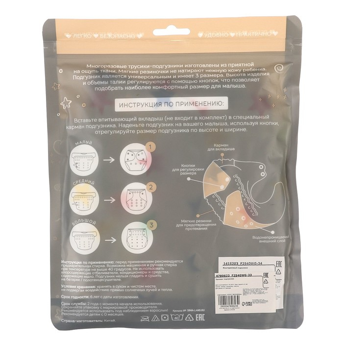 • Размер подгузника универсальный, подходит для детей от 3 до 15 кг, от рождения до 3 лет;