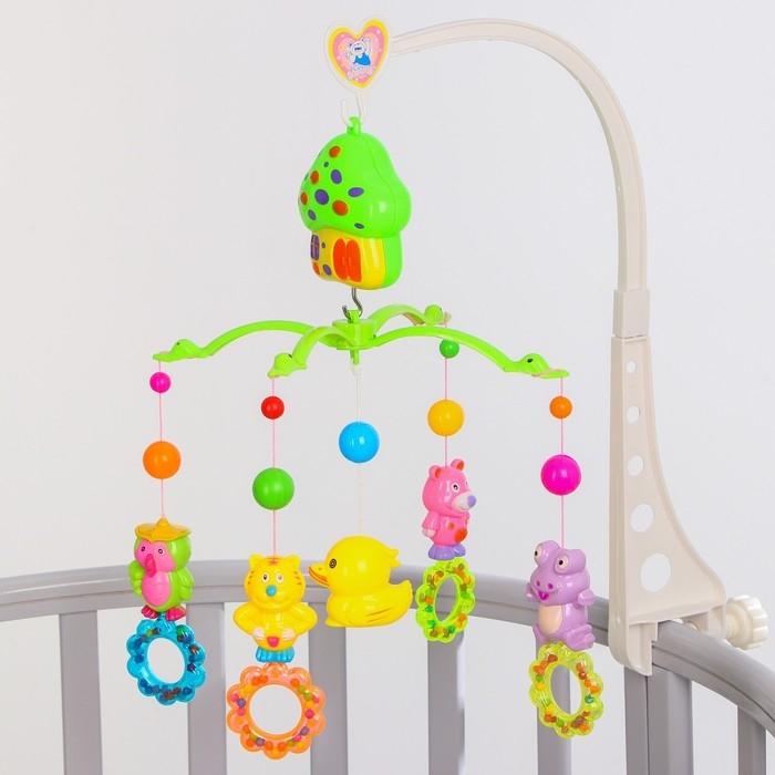 Мобиль музыкальный на кроватку «Домик. Зверятки погремушки №2», заводной, Крошка Я