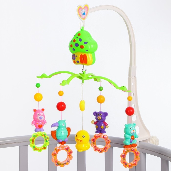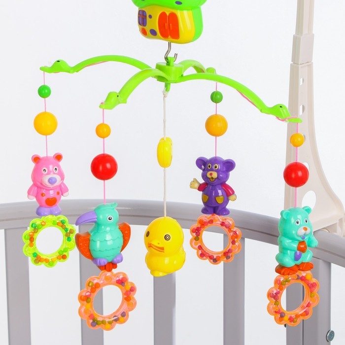 Мобиль музыкальный на кроватку «Домик. Зверятки погремушки №6», заводной, Крошка Я