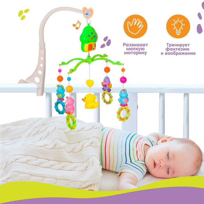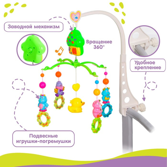 Мобиль музыкальный на кроватку «Домик. Зверятки погремушки», заводной, Крошка Я