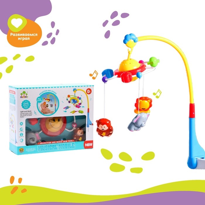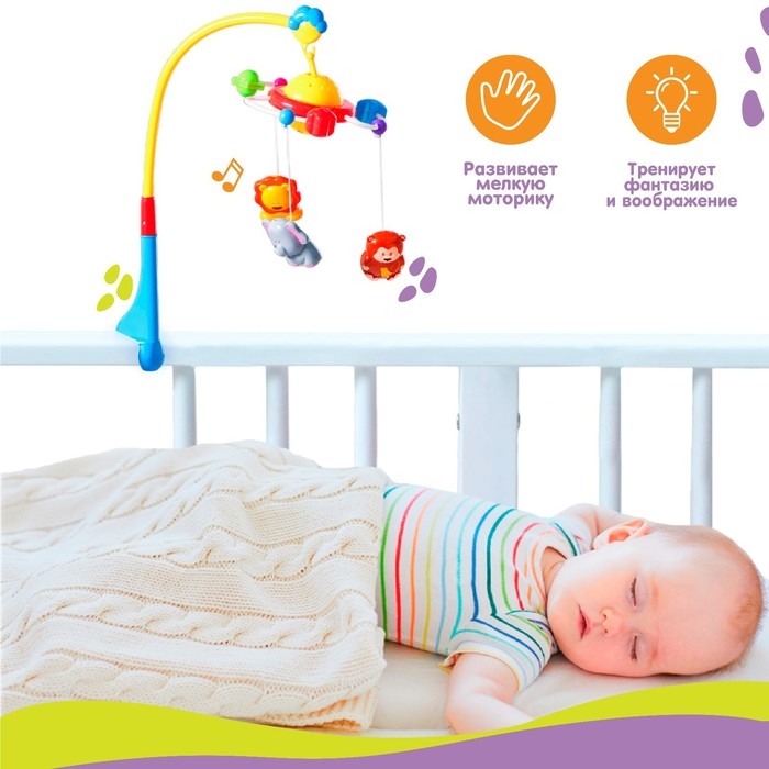 Мобиль музыкальный на кроватку «Зоопарк», на батарейках, Крошка Я