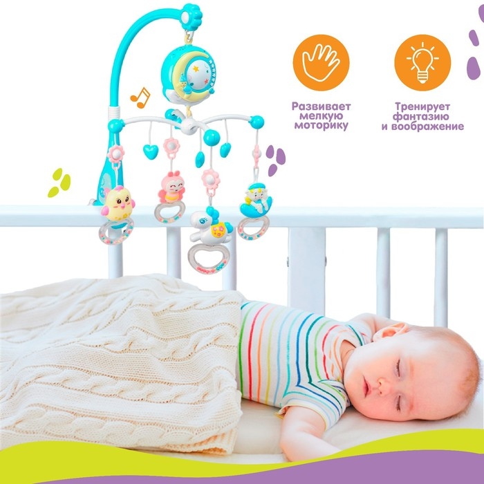 Мобиль музыкальный на кроватку «Совушка», работает от батареек, Крошка Я