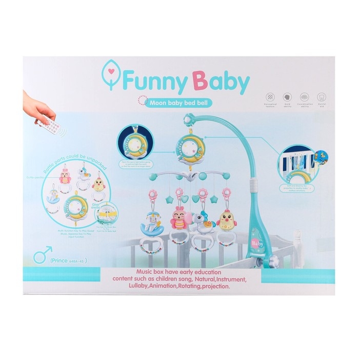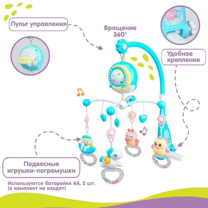 Мобиль музыкальный на кроватку «Месяц», работает от батареек, проектор + пульт