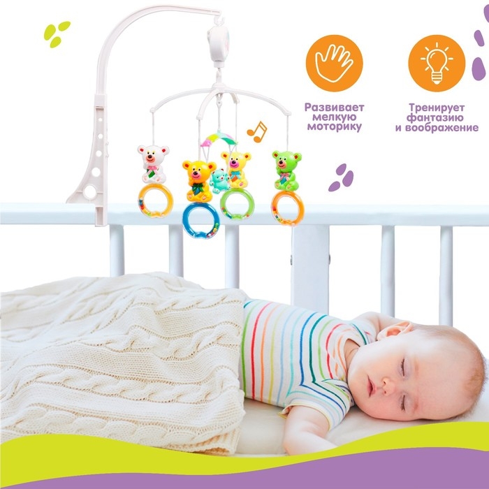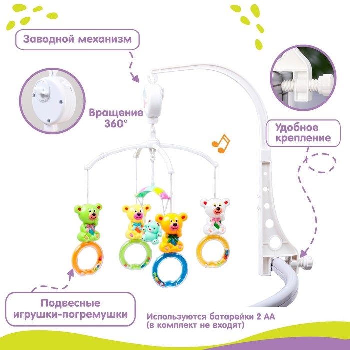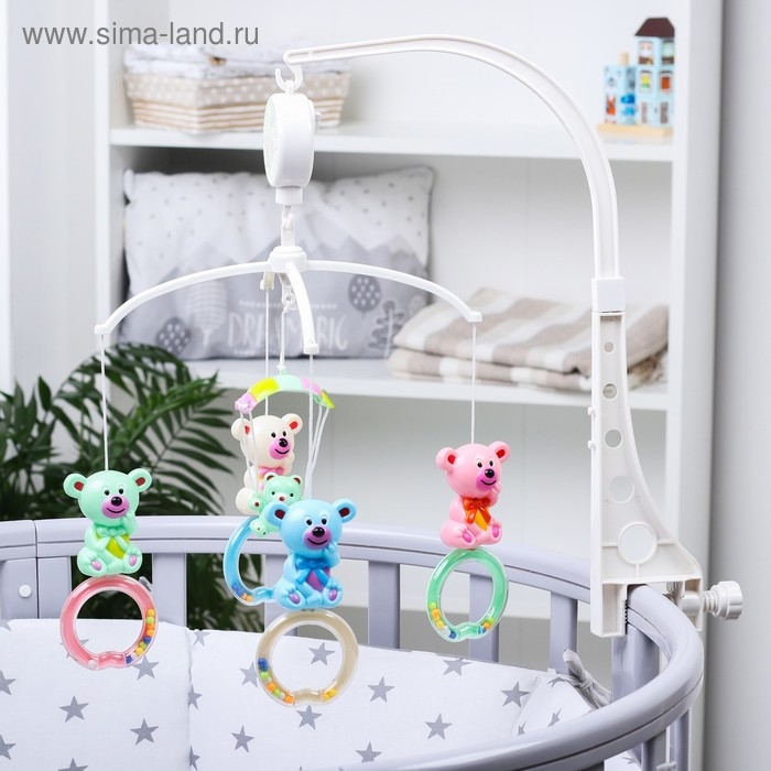 Мобиль музыкальный на кроватку «Мишки на кольце», заводной, наклейка МИКС, Крошка Я