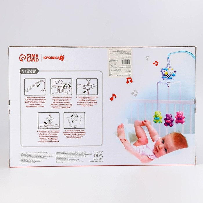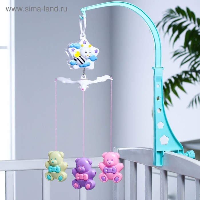 Мобиль музыкальный на кроватку «Мишутки», 3 игрушки, заводной, Крошка Я
