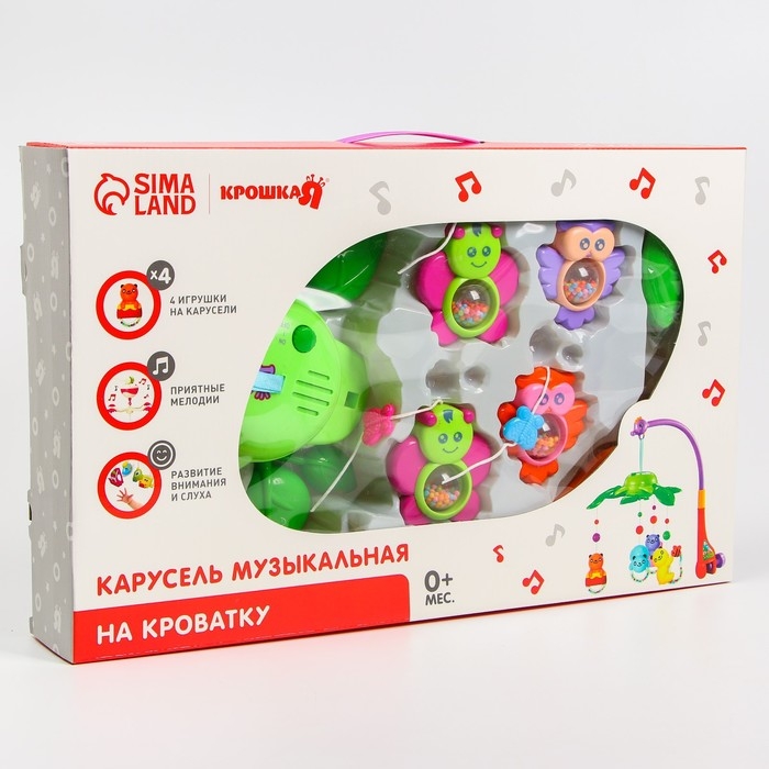 Вращающаяся музыкальная карусель поможет убаюкать малютку. Во время бодрствования грудничок будет с интересом наблюдать за движением весёлых фигурок, научится распознавать звуки, цвета и формы. Подросший малыш начнёт тянуться ручками к игрушкам: так ребёнок тренирует координацию движений и пробует оценивать расстояние до предметов.