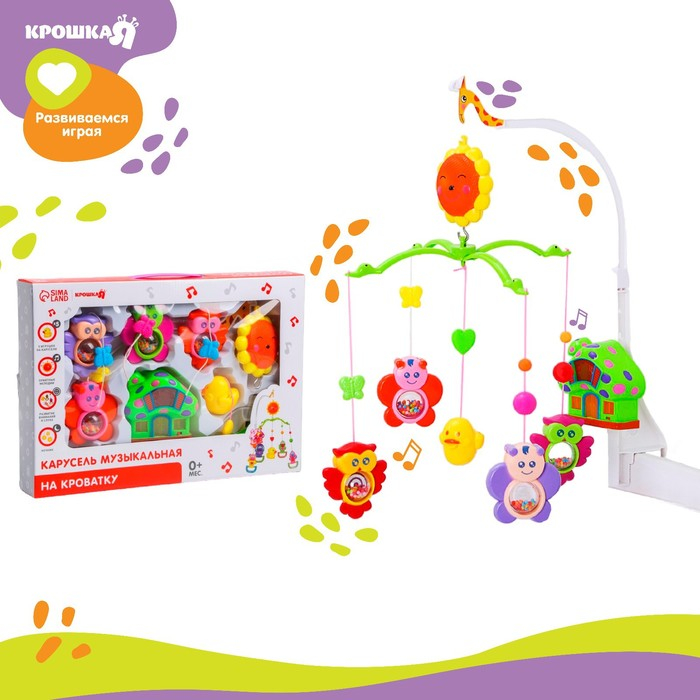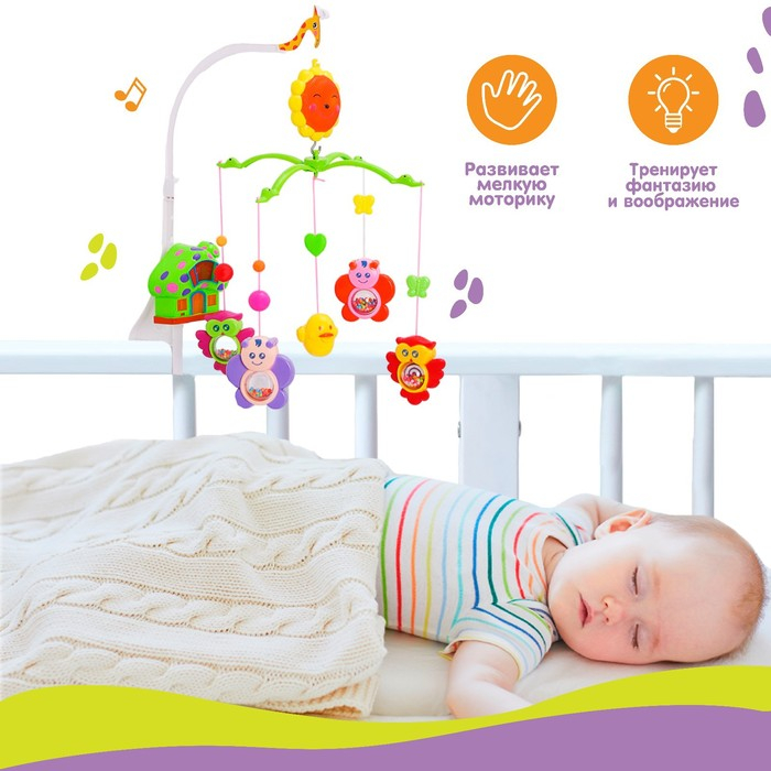 Мобиль музыкальный на кроватку «Пряничный домик. Совы и бабочки», заводной, Крошка Я