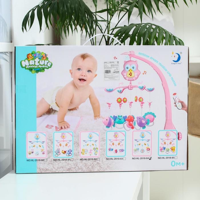 Мобиль музыкальный на кроватку «Совушка», проектор, пульт, цвет и виды МИКС