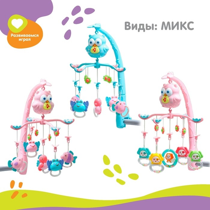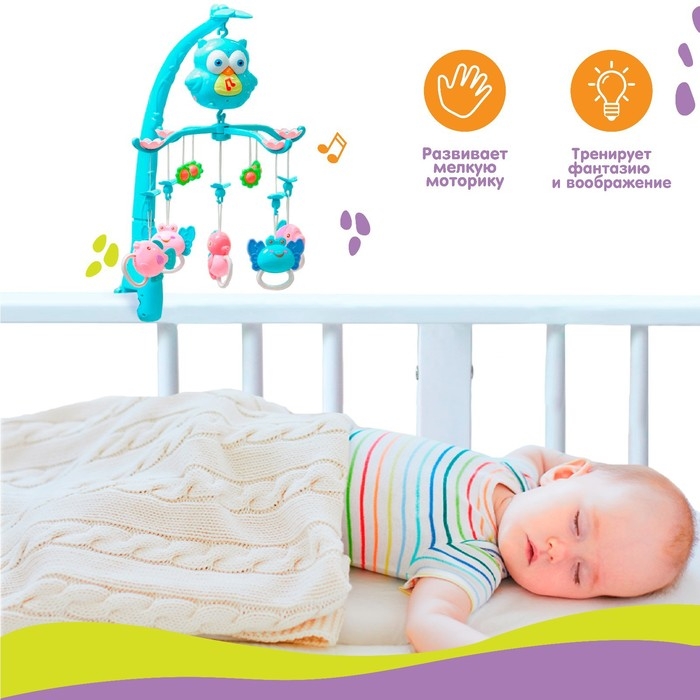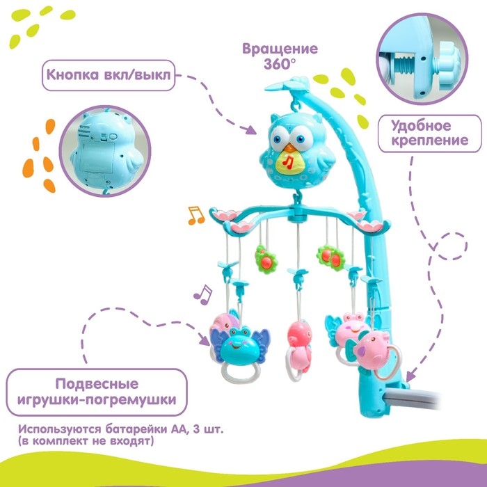 Мобиль музыкальный на кроватку «Совушка», работает от батареек, Крошка Я