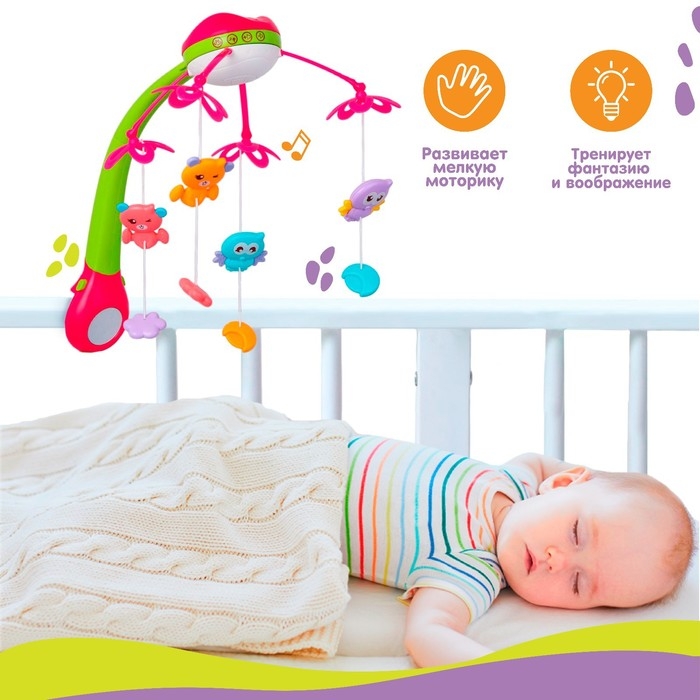 Мобиль музыкальный на кроватку «Совушка», работает от батареек, Крошка Я
