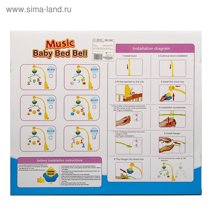 Мобиль на кроватку, проигрывающий колыбельные мелодии, отличная игрушка и подарок для малыша от 0 мес. Его можно прикрепить с помощью кронштейна, который идет в комплекте, на кроватку или коляску. Основа с игрушками вращается на 360 градусов. Все погремушки съемные, ими можно играть по отдельности, а также их очень удобно мыть.