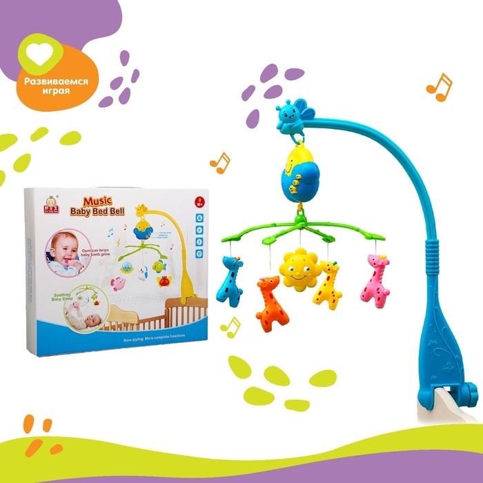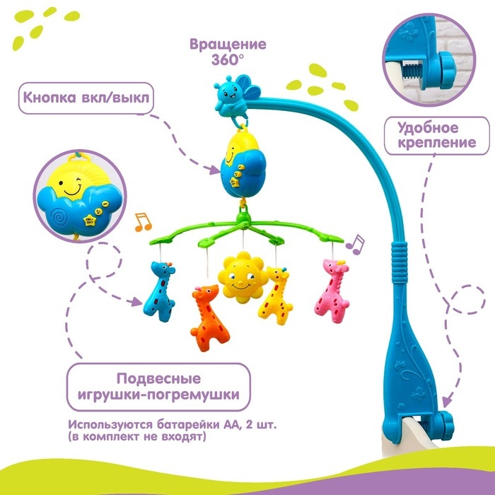 Мобиль музыкальный на кроватку «Жирафики», работает от батареек