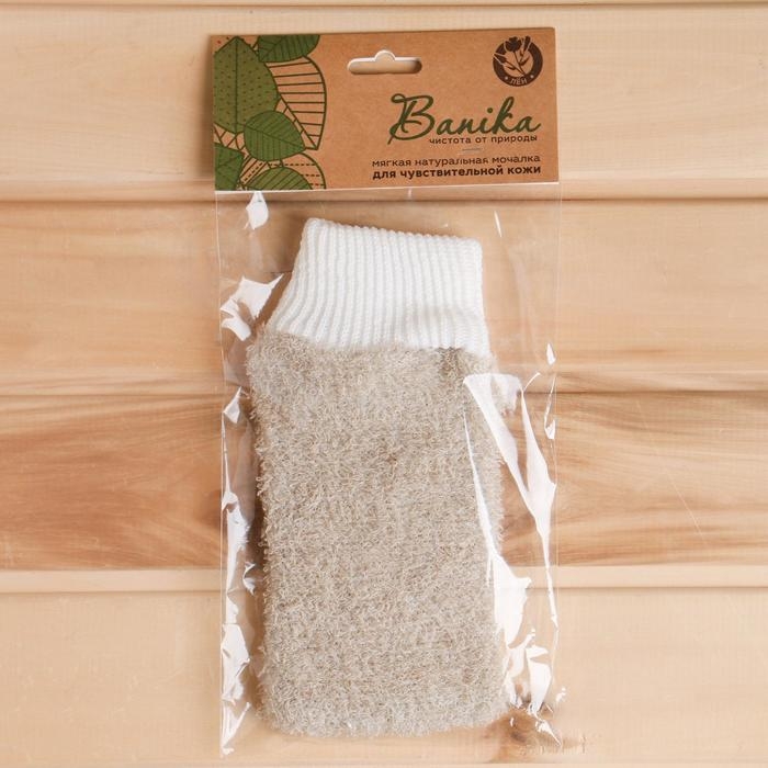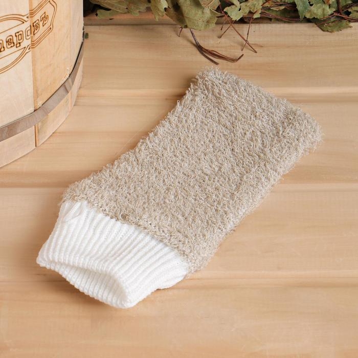 Мочалка банная "Рукавица", лён, 23х13см