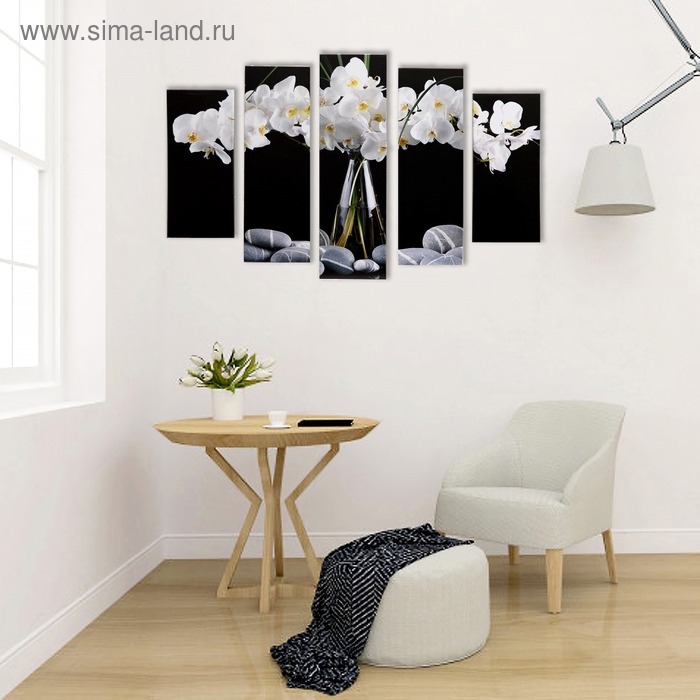 Модульная картина "Белые орхидеи" (2-23х52; 2-24х70; 1-24х80) 120х80см