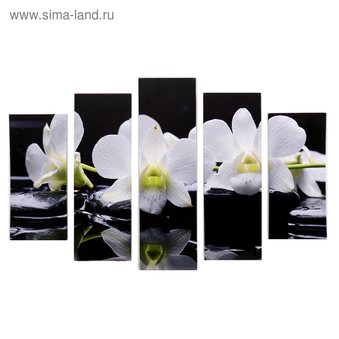 Модульная картина "Белые орхидеи у воды" (2-23х52; 2-24х70; 1-24х80) 120х80см