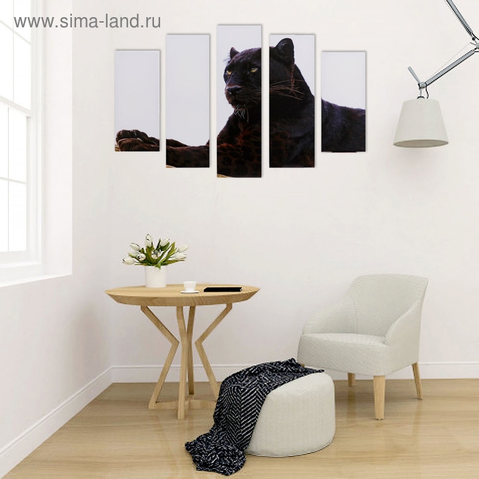 Модульная картина "Гордый леопард" (2-23х52; 2-24х70; 1-24х80) 120х80см
