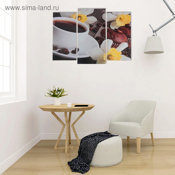 Модульная картина "Кофе с кексами" (2-25х52; 1-30х60) 60х80 см