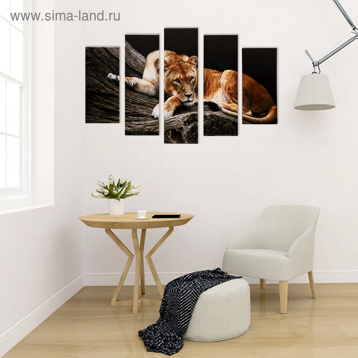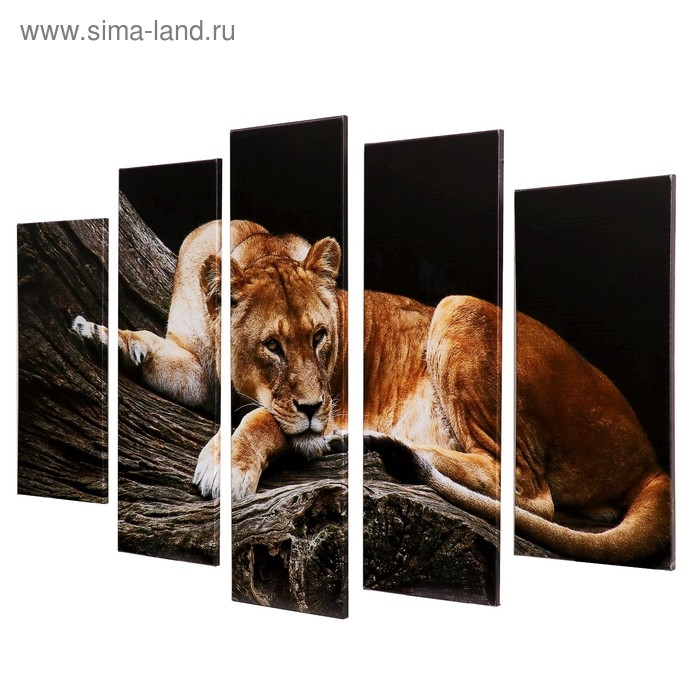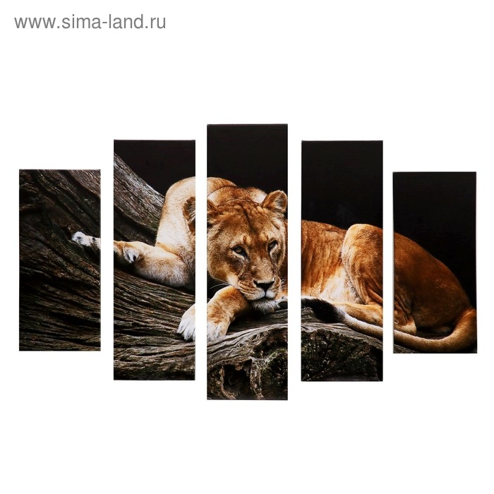Модульная картина "Львица" (2-23х52; 2-24х70; 1-24х80) 120х80см