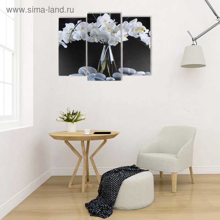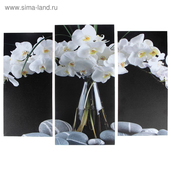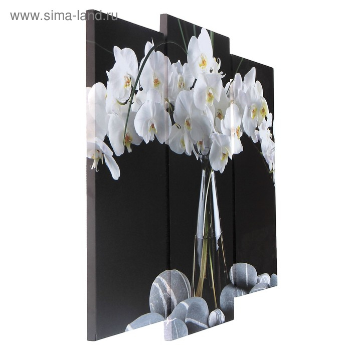 Модульная картина "Орхидеи в вазе" (2-25х52; 1-30х60) 60х80 см