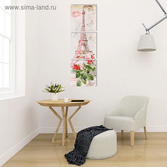 Модульная картина "Романтичный Париж" 111х37 см (3 - 37х37см)