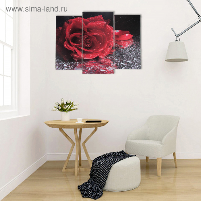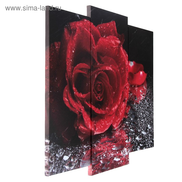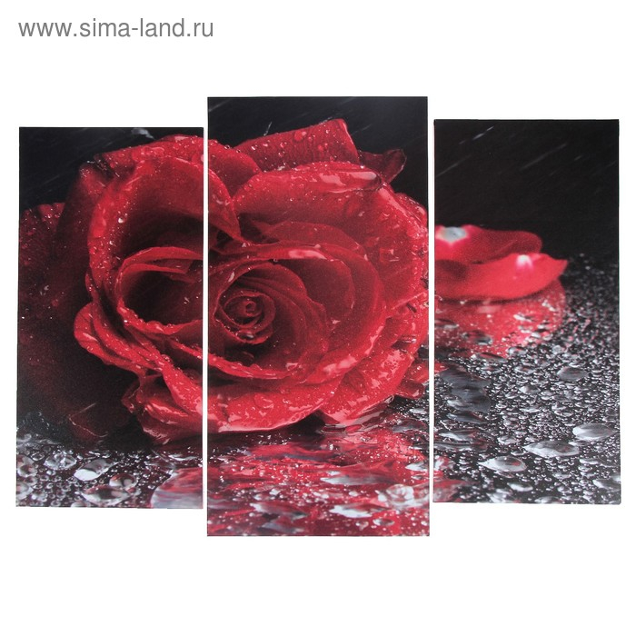 Модульная картина "Роза под дождём" (2-25х52; 1-30х60) 60х80 см