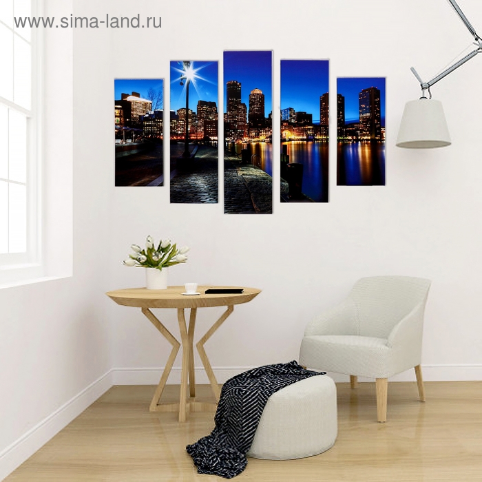 Модульная картина "Вечерняя набережная" (2-23х52; 2-24х70; 1-24х80) 120х80см