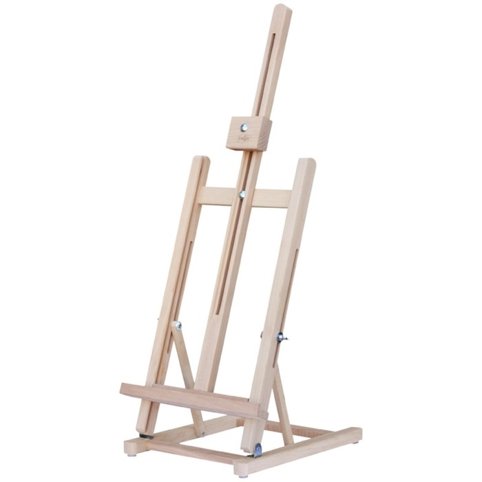 Настольный мольберт подходит для холстов небольшого размера. Размер мольберта – 23*28*68(85) см, максимальный размер холста – 50 см.Верхний держатель мольберта надёжно фиксирует холст. Мольберт имеет плавную регулировку угла наклона и оснащён полкой-упором для холстов и планшетов. Он подходит начинающим и профессиональным художникам. Изготовлен из лакированного бука. Удобно хранить в сложенном виде.
