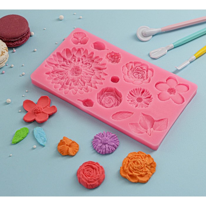 Молд «Цветы», силикон, 25×10 см, цвет розовый