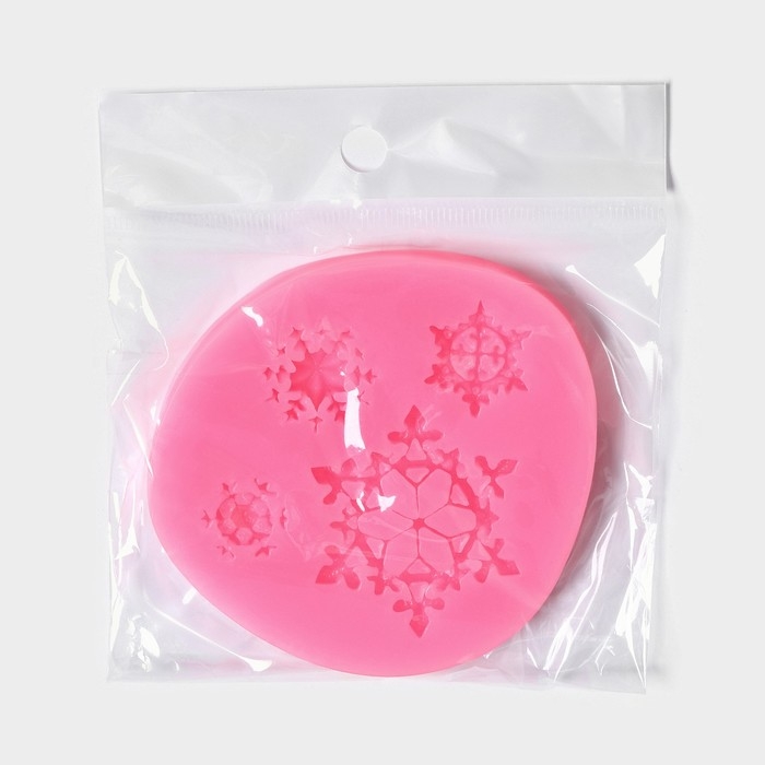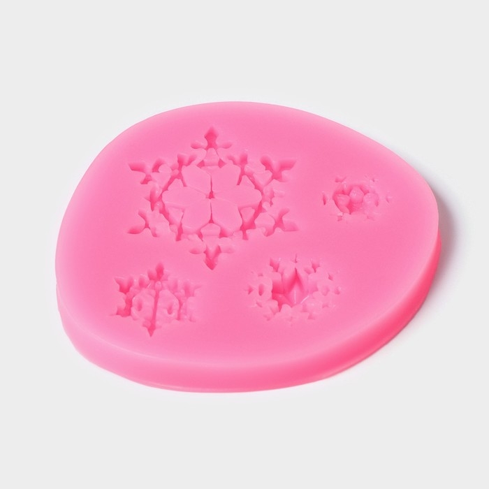 Молд новогодний «Четыре снежинки», силикон, 8×8 см, цвет розовый