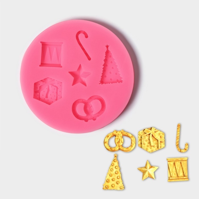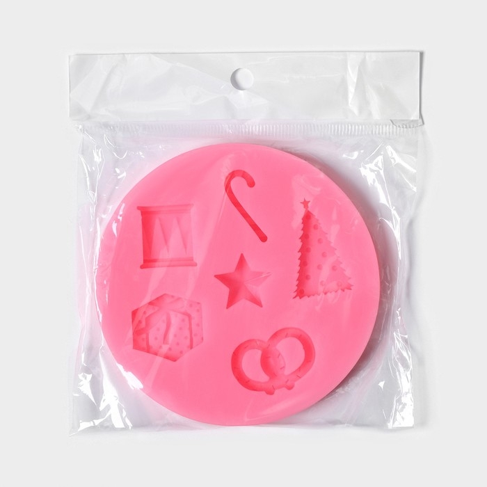 Молд новогодний «Новогодние атрибуты», силикон, 10×10×1 см, цвет МИКС