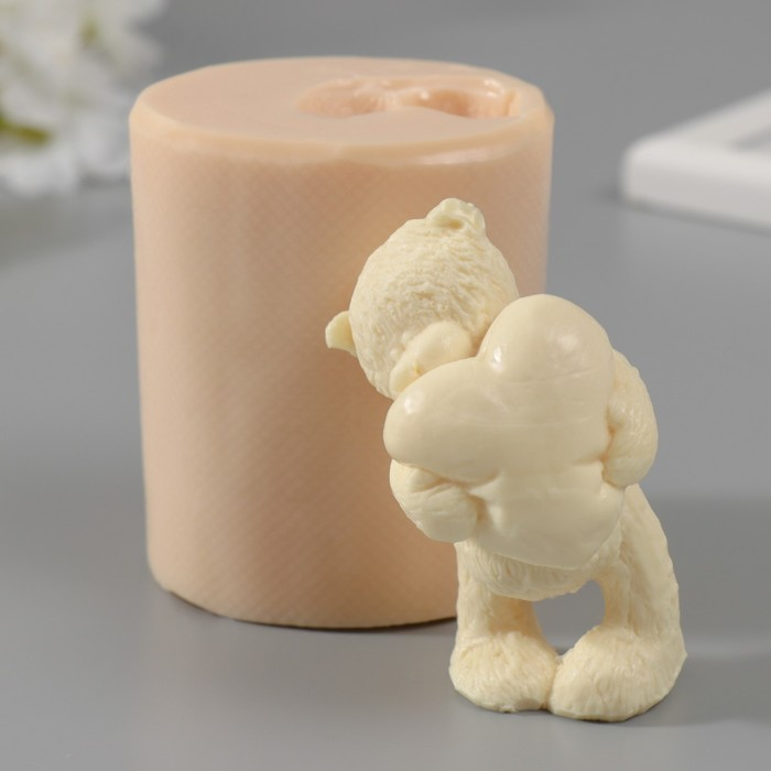 Молд силиконовый "Мишка с большим сердцем" 9х5,5х4,5 см МИКС