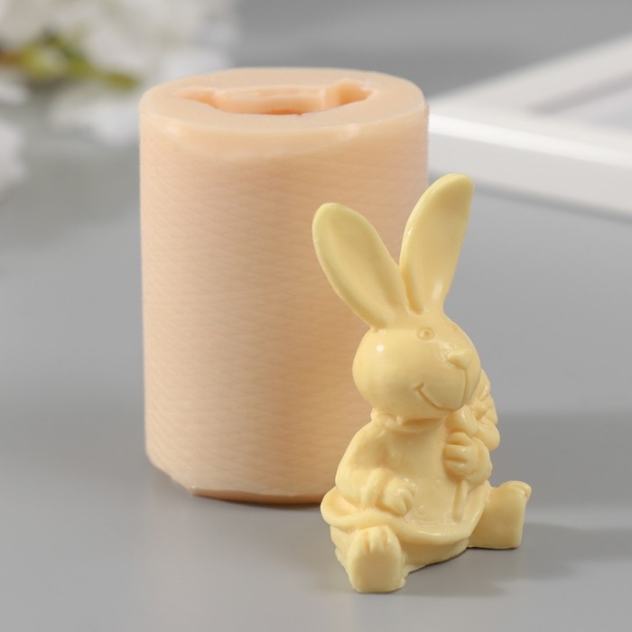 Молд силиконовый "Заяц с цветком" 3,5х3х5,5 см МИКС