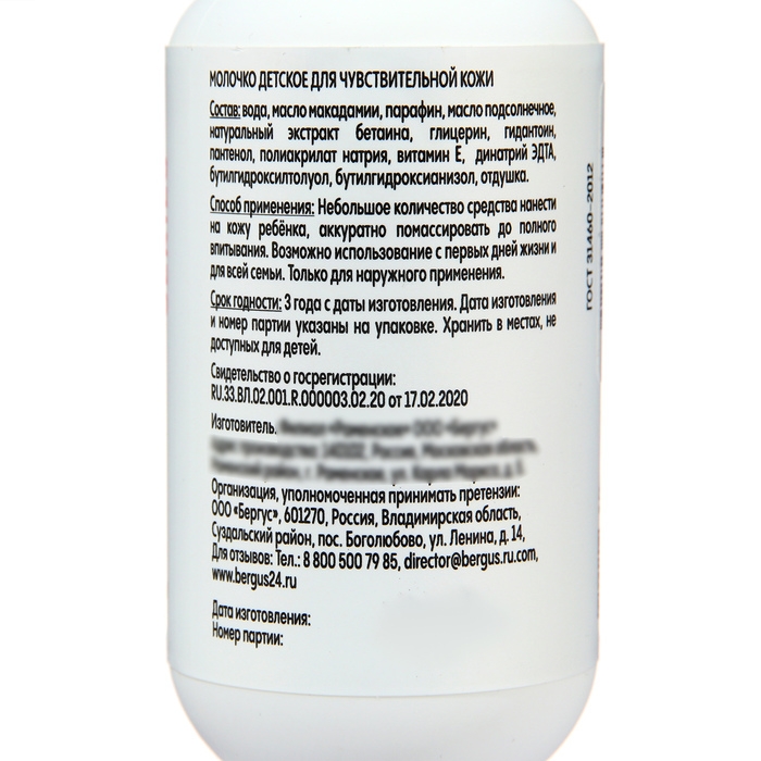 Детское молочко с маслом макадамии, пантенолом и витамином Е - это нежное и эффективное средство для ухода за кожей вашего ребенка.
