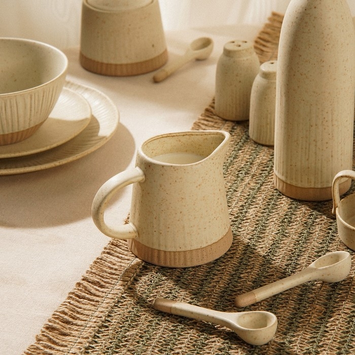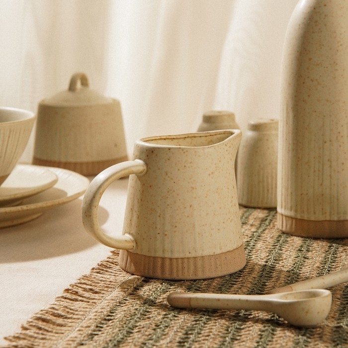 Молочник отличается изысканным матовым покрытием в нежном бежевом цвете, что придает ему универсальность и делает идеальным дополнением к любой сервировке. Его эргономичная форма и удобная ручка обеспечивают комфортное использование, будь то подача молока к утреннему кофе или хранение соусов во время обеда.